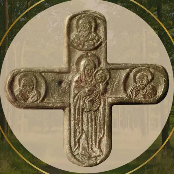 Образ обретен на Пинщине в 1182 году недалеко от села Купятичи, расположенного на реке Ясельда при впадении ее в Припять. Девочка Анна, пасшая стадо овец, заметила между деревьями яркий свет. Подойдя ближе, увидела на дереве небольшой крест с изображением на нем Богоматери. В радости девочка отнесла крест домой, спрятала в сундук и возвратилась к стаду. Но на том же месте снова увидела сияние и тот же чудесный крест. Анна, думая, что нашла второй крест, повесила его на грудь. Вечером она хотела показать крест отцу, но не нашла его ни у себя, ни в сундуке. Тогда вместе с отцом она пошла в лес, они нашли крест на том же дереве и снова принесли его домой. Но на следующий день святыни снова не оказалось в доме.